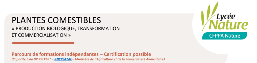 Télécharger les documents de formation du Jardin de Pauline et contacter l’organisme en charge de votre future formation « Plantes comestibles : : de la culture biologique à la commercialisation ».
